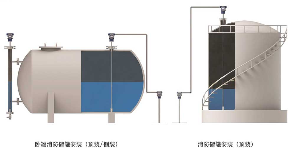 安裝要求:一般采用標準法蘭或螺紋安裝于罐頂,特殊工況選擇側(cè)側(cè)垂直安裝,為方便調(diào)試,儀表安裝建議在有平臺的地方。